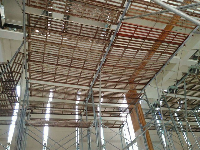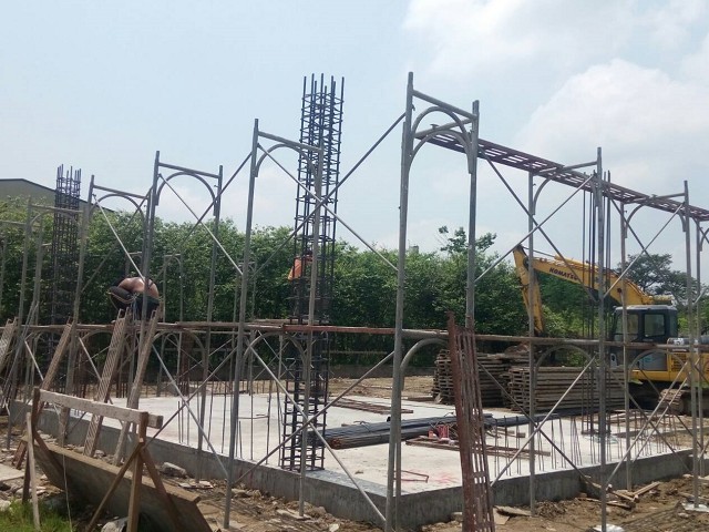 利用萬向活扣將鋼管組合而成之施工架,可塑性高,已逐漸取代傳統竹架